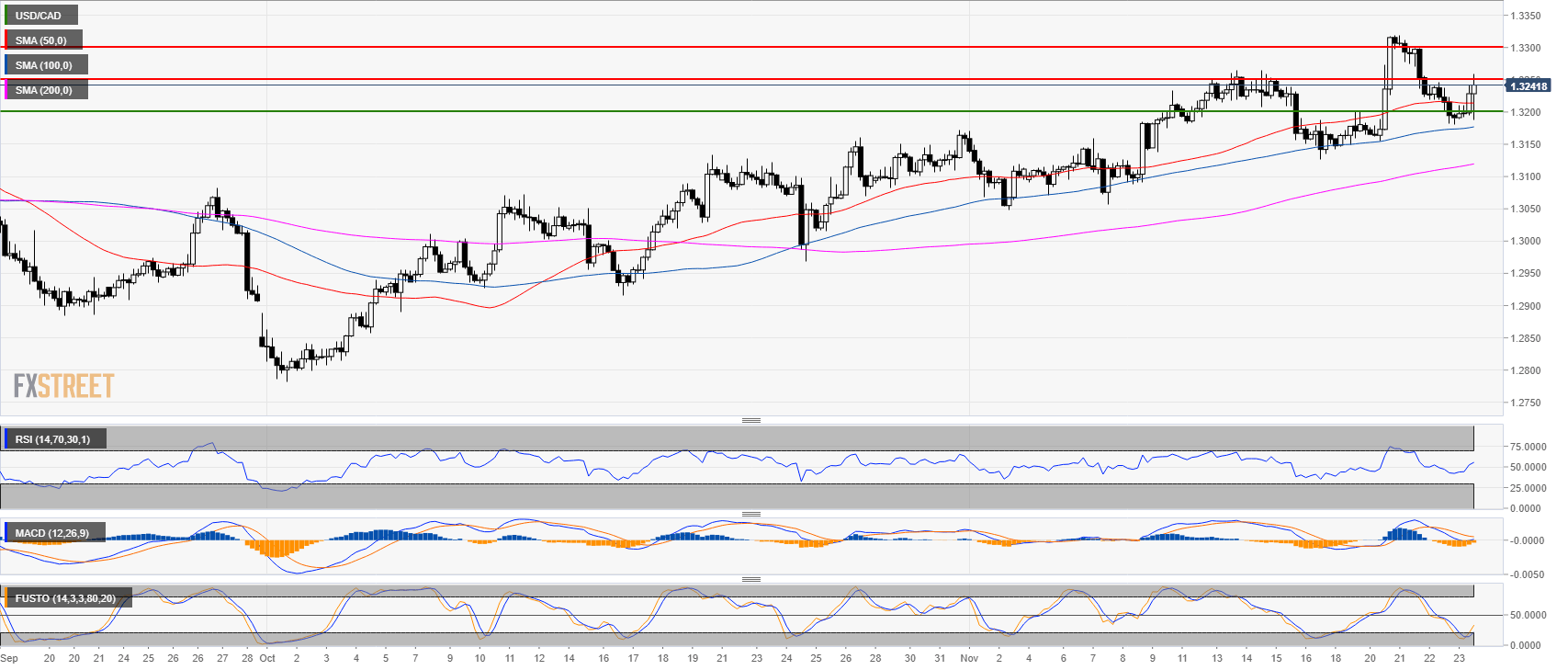 - USD/CAD found support at 1.3200 but bulls found solid resistance at the 1.3260 resistance.