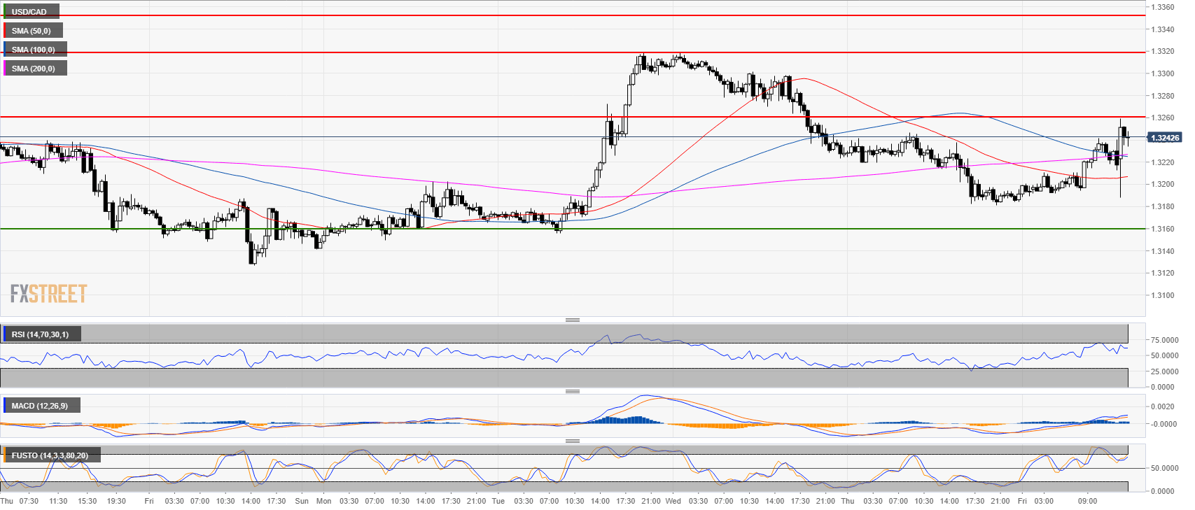 - USD/CAD is fading the spike to 1.3260 resistance.