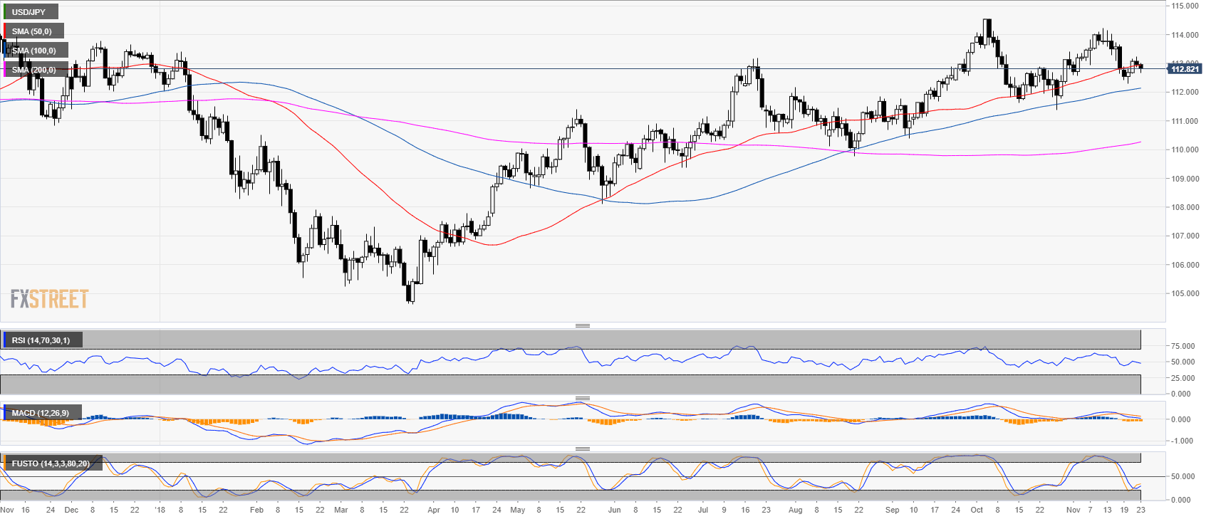 • USD/JPY is trading below its 50, 100 and 200 SMA.