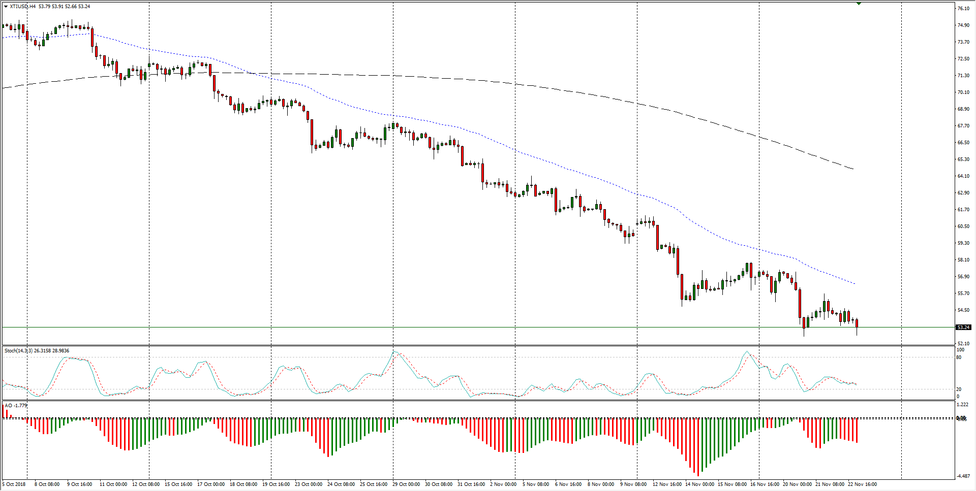 - Moving to the medium-term, crude barrel costs remain trapped in a steady bearish trend, set to close bearish for a seventh week straight as lower highs continue to mark in declining resistance as the 200-period moving average struggles to catch up to price action.
