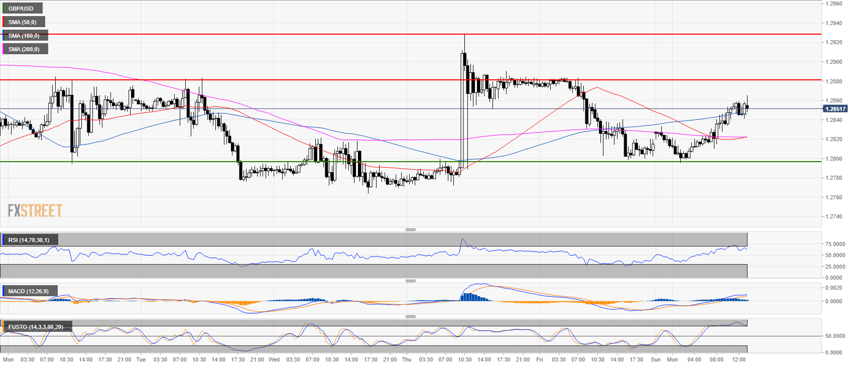 - The level to beat for bulls is 1.2880 resistance while the main support is 1.2800 figure.
