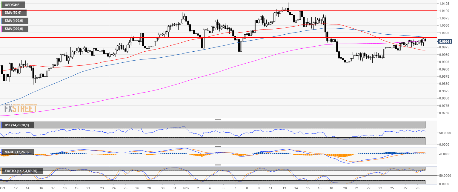 • USD/CHF is challenging the parity level along with the 100 SMA.