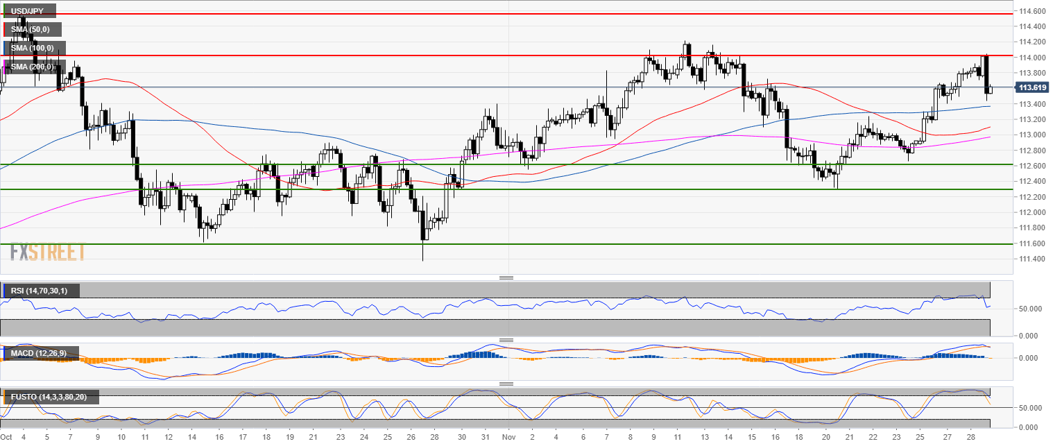 • USD/JPY sold off 60 pips on the back of comments from Fed’s Powell strongly rejecting the 114.00 figure in the process.
