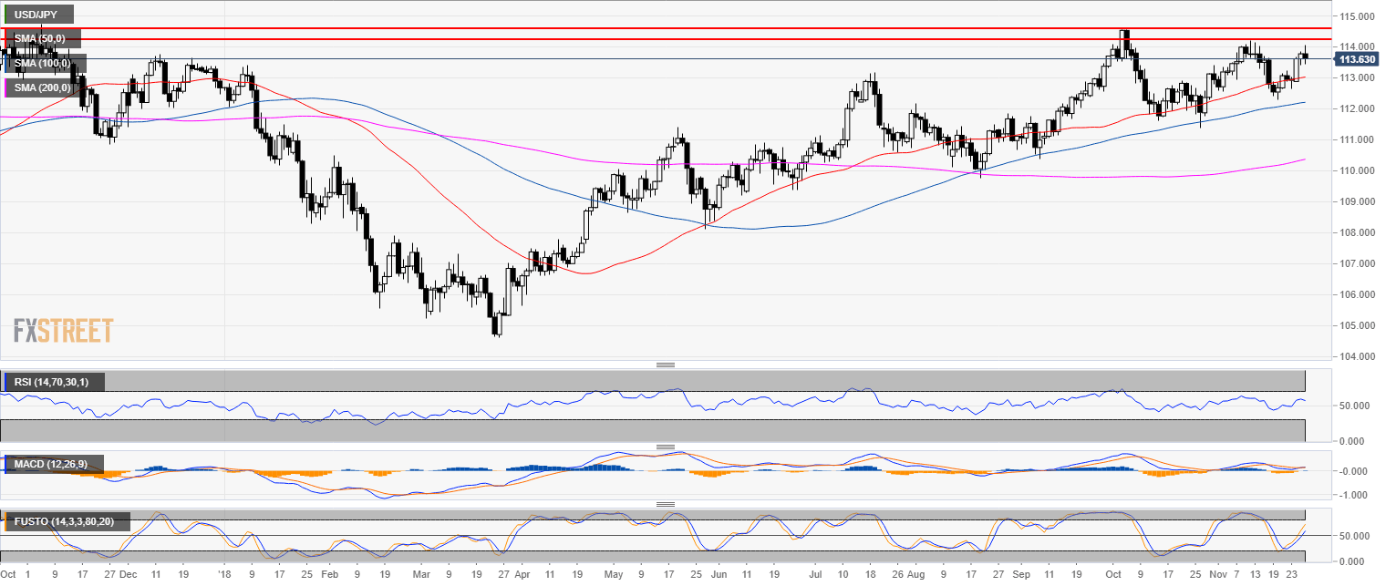 • USD/JPY is trading in a bull trend above its main simple moving averages (SMAs).