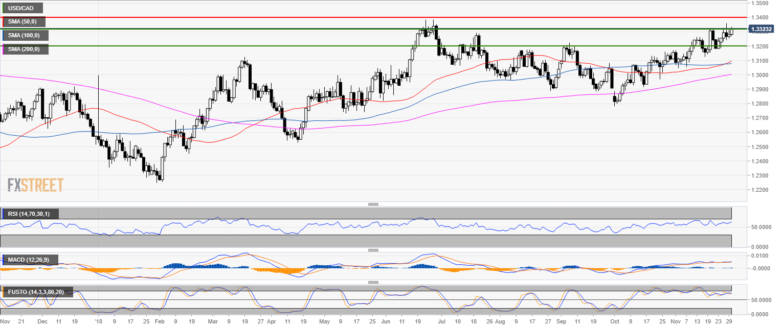 • USD/CAD is challenging the November highs as bulls are also aiming at the June’s  top.
