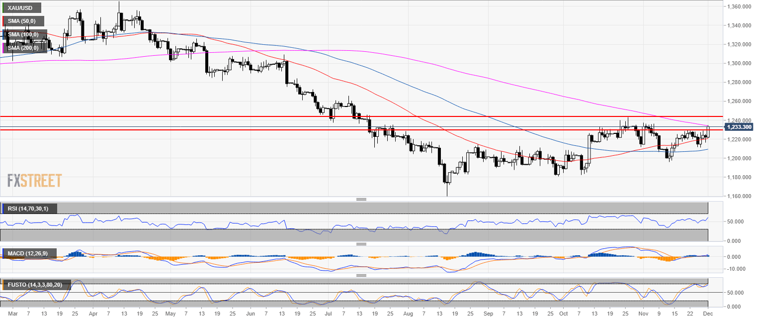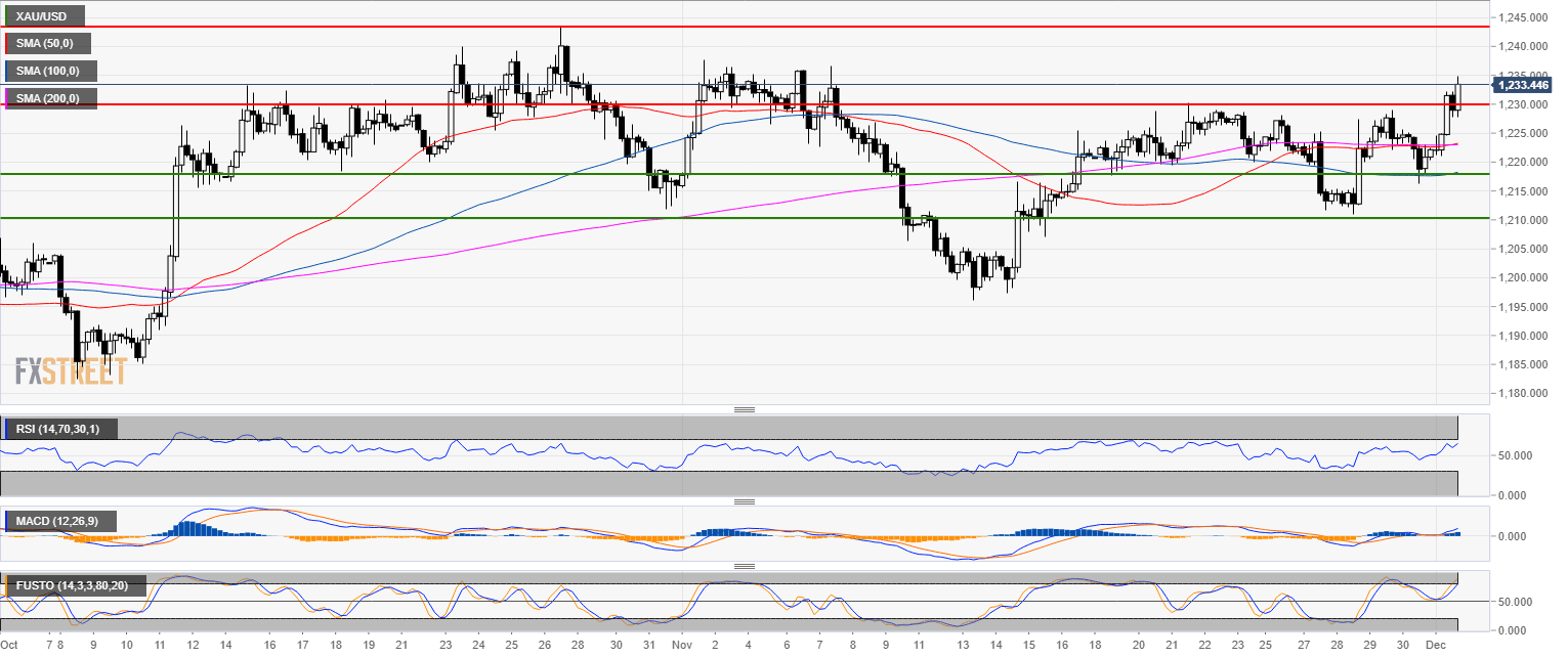 - Gold is attempting to break above the key 1,230.00 resistance.