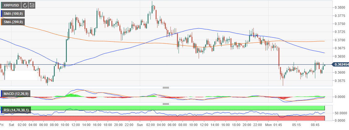 Ripple price is currently making headway above $0.36 after finding support at $0.35. However, the 50 SMA is below the 100 SMA to show that the sellers are still present in the market. Besides, both the moving averages will limit movement at $0.366 and $0.3696 respectively. If the buyers can pull the price above $0.375, XRP/USD will be primed for movement past $0.38, although $0.4 is out of reach, at least for now.