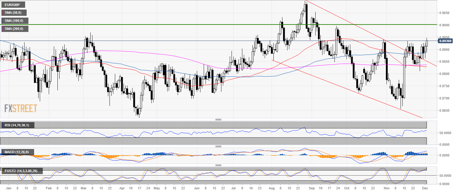 • 0.8940, the October high is the level to beat for buyers. A break above the resistance level should lead to a run to 0.9000 figure.