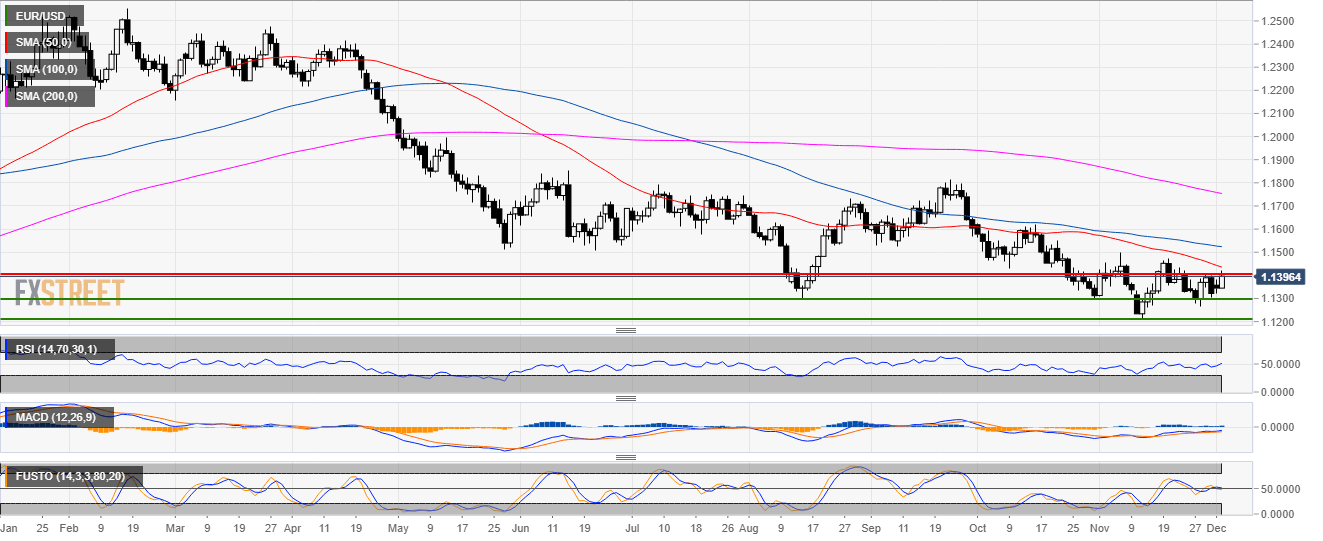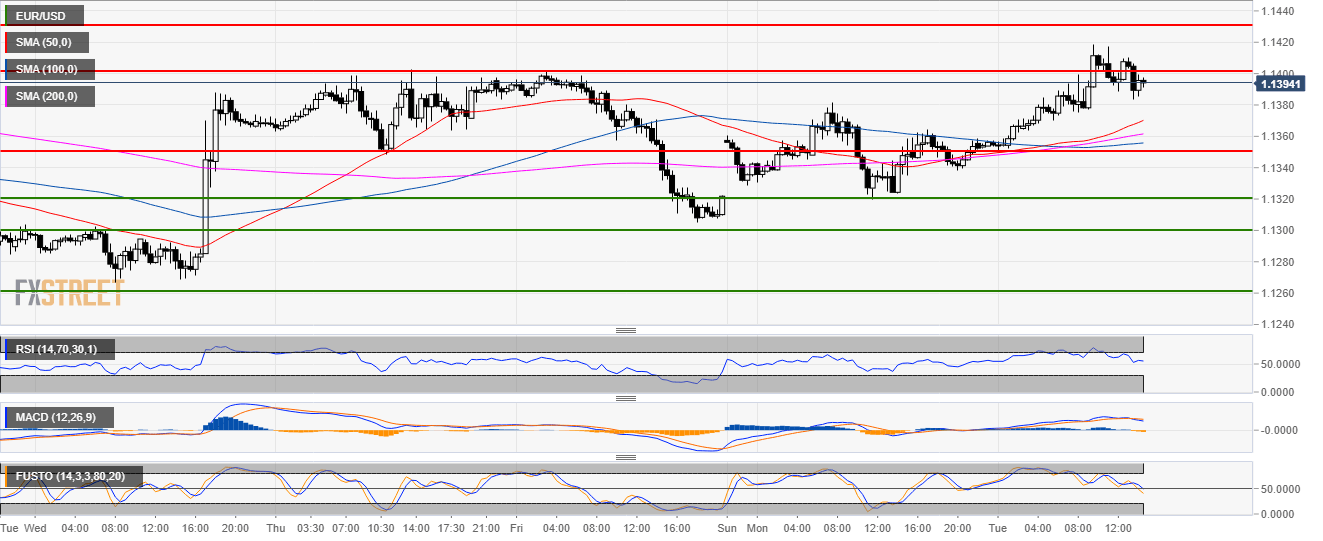 - EUR/USD is finding resistance below the 50 SMA and near 1.1400 figure.