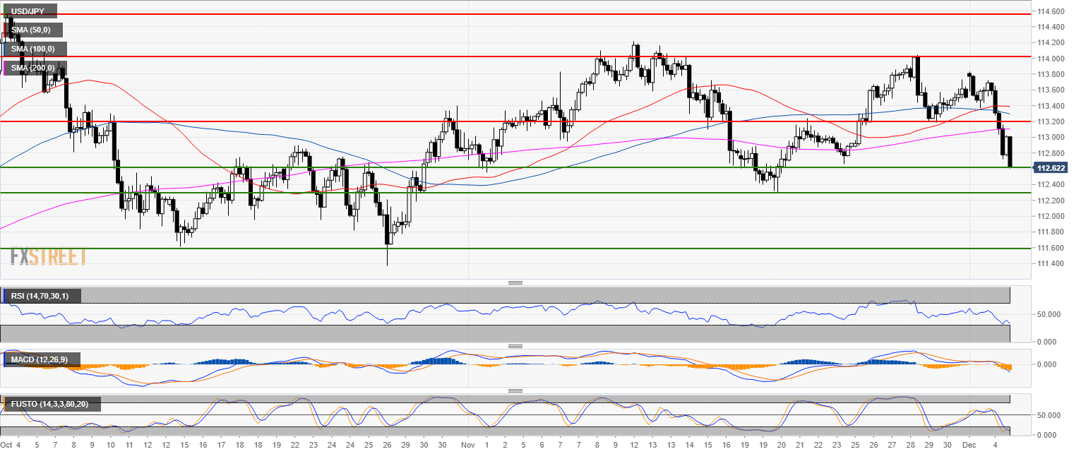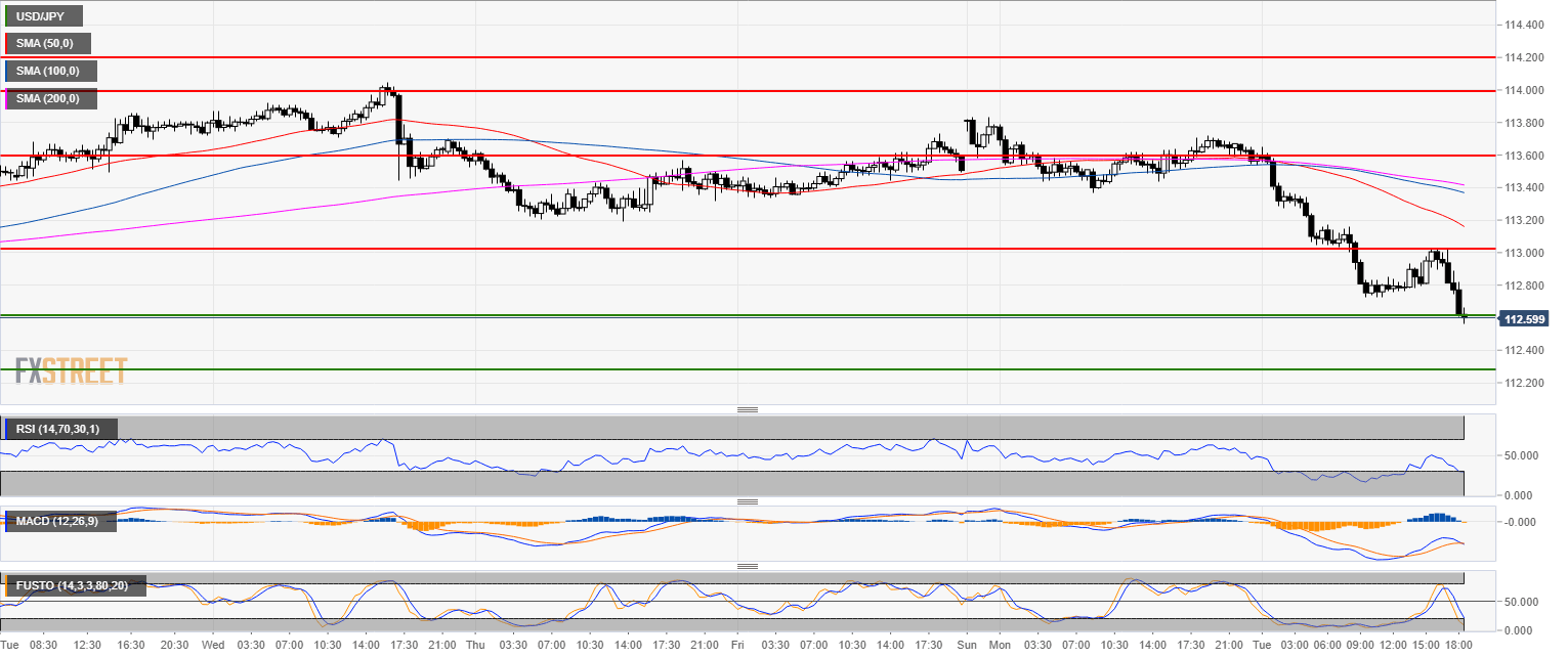 - USD/JPY broke below the 50 SMA and the 113.00 figure.