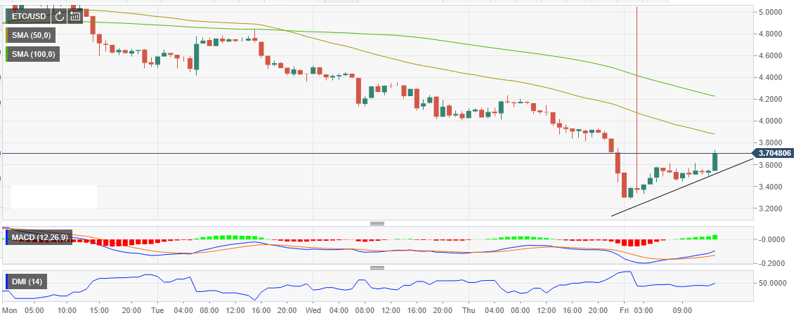 Meanwhile, Ethereum Classic is valued at $3.58 following a 2.17% rise on Friday. Other digital assets are in red starting with all the top three coins. Bitcoin price is correcting lower by 1.14%, Ethereum by 5.7% while Ripple (XRP) by 0.92%.