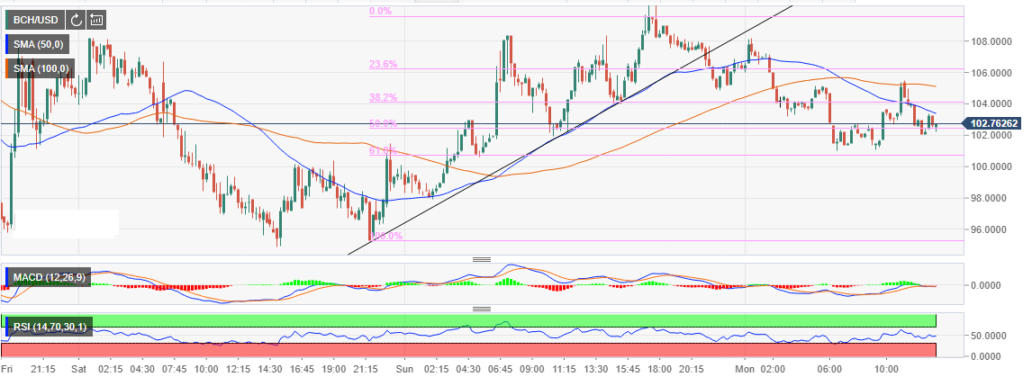 The $1.8 billion cryptocurrency is still correcting lower on Monday by 3.38%. It has a 24-hour trading volume of $92 million and is currently ranked as the 6th largest crypto in the market. Its sister token, Bitcoin SV is trading at $98.07 and has a 24-hour trading volume of $62 million. Its market cap has been thinning in the last 24 hours to $1.7 billion. In fact, it has retreated from the 5th position to the 8th position according to the data on CoinMarketCap.