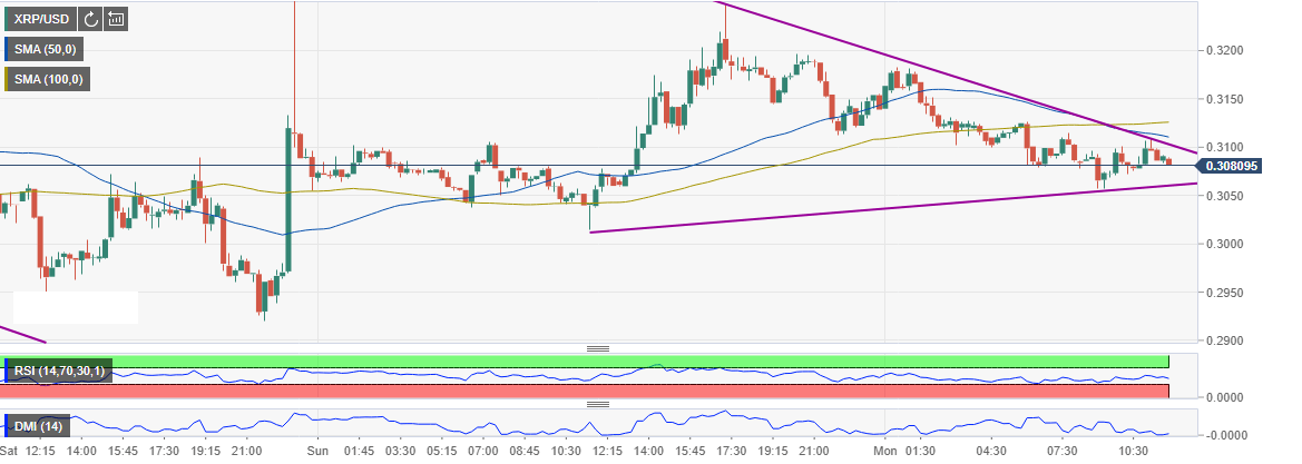 The declines last week had Ripple slide below the vital support at $0.3 and formed new December lows at $0.292. An upward move from the lows ensued during the weekend sessions. XRP/USD stepped above $0.32 before the bullish trend turned bearish. The price is stable above $0.30 and has formed a short-term contracting triangle on the 15-minutes range.