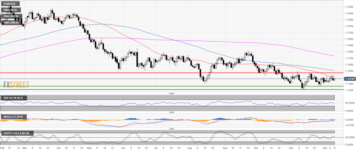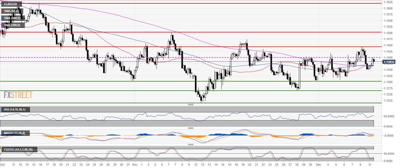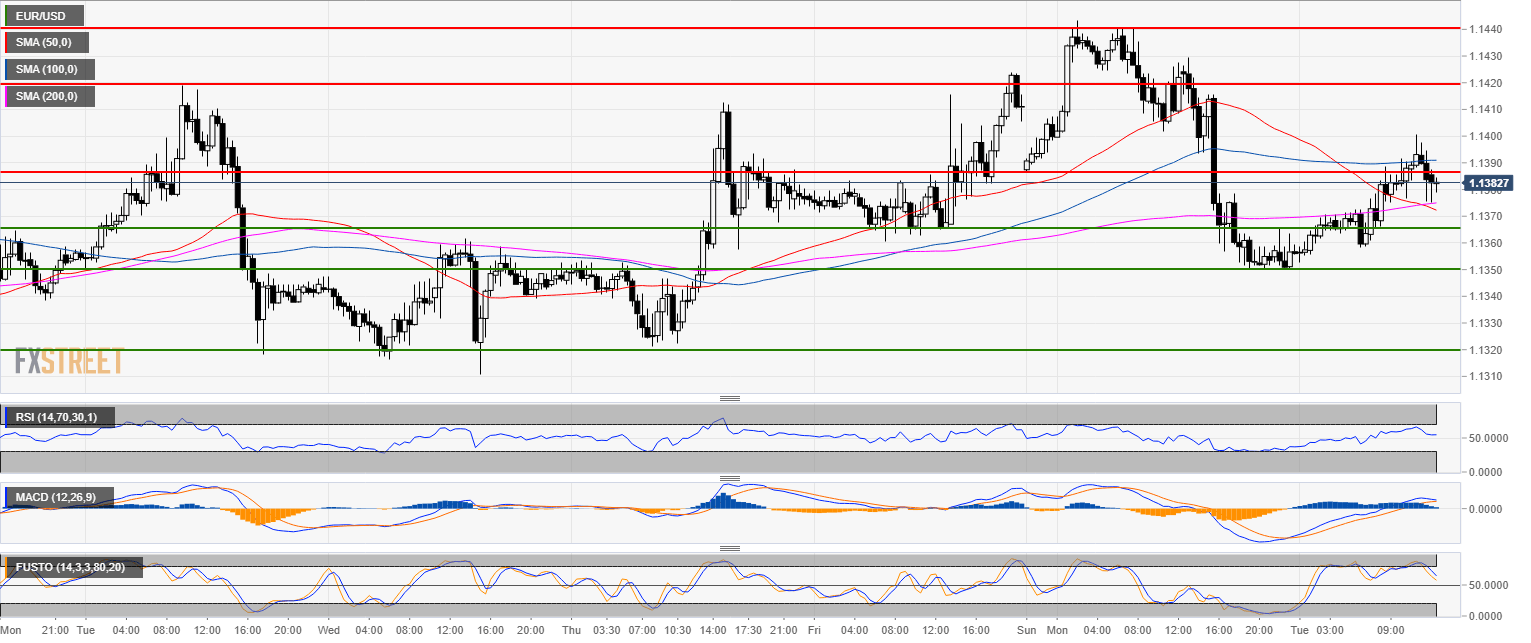 - EUR/USD is trading above its 200 SMA but the price is having a hard time to get above 1.1400 figure.