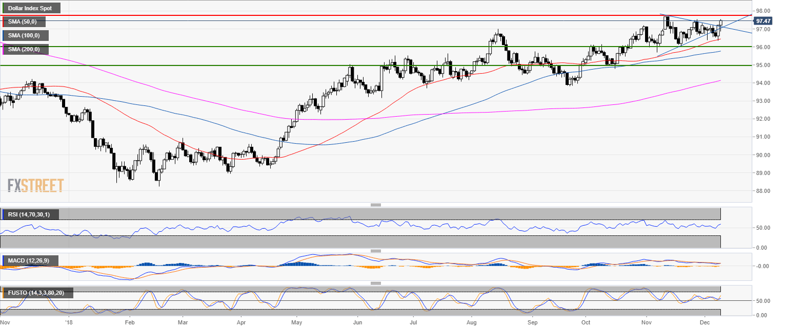 Home US Dollar Index Technical Analysis: 97.54 target hit as DXY bulls  get near the 2018 high