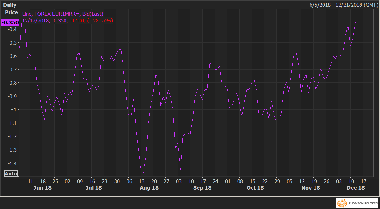 However, both the risk reversals and the common currency could take a beating if Draghi sounds dovish, forcing markets to scale back expectations of 2019 liftoff.