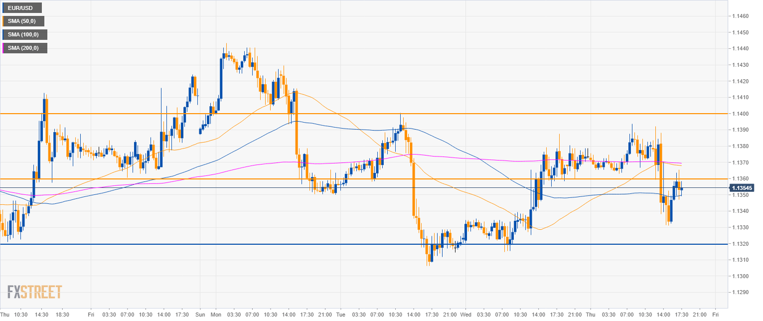 • EUR/USD is back to square one near the SMAs cluster close to the 1.1360 level.