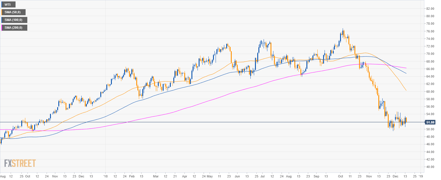 - Crude oil WTI is trading in a bear trend below the 50, 100 and 200-day simple moving average.