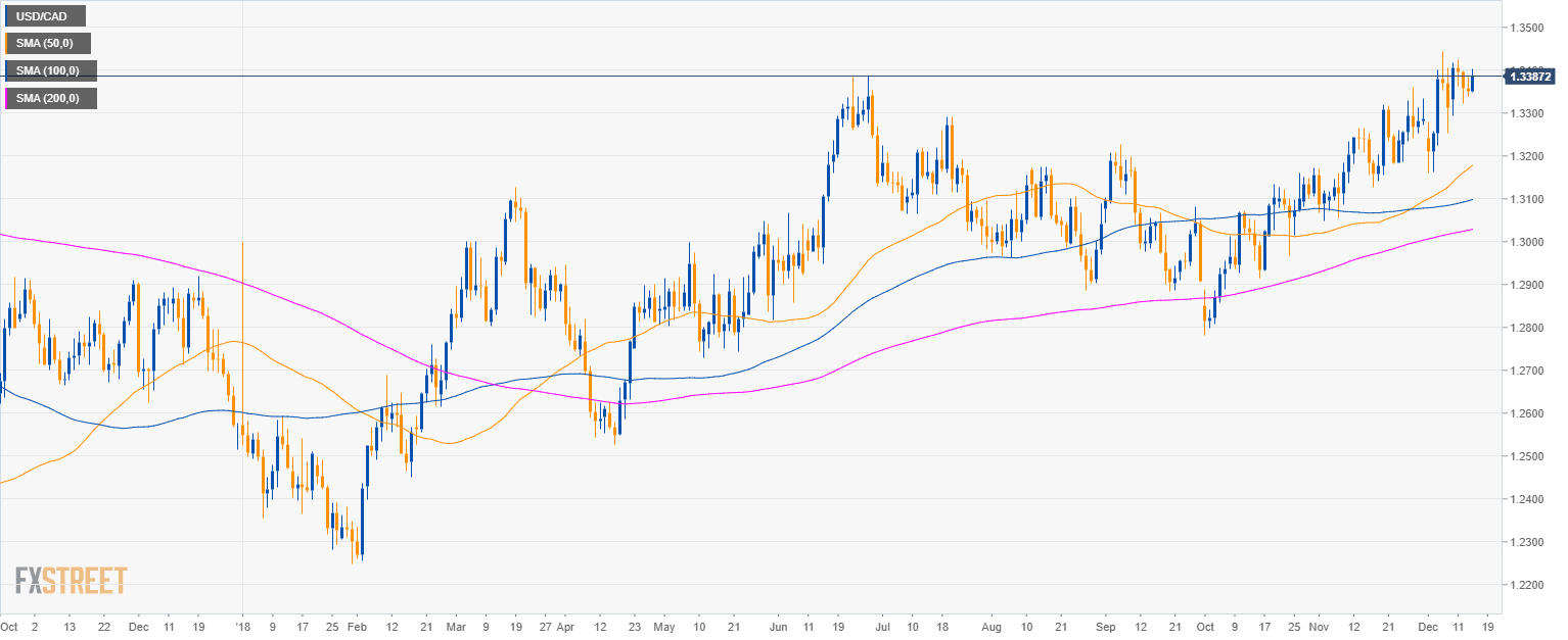 - USD/CAD is finding resistance at the 1.3400 figure. Any rally above it seems, at this stage, unsustainable.