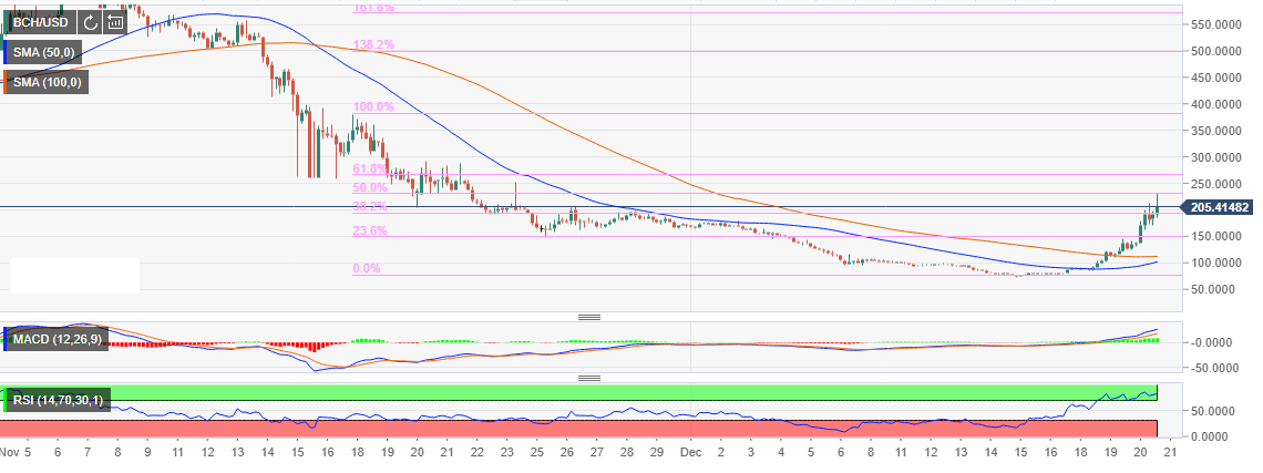 Bitcoin Cash is still at the forefront of the recovery in the market. The asset has increased 64.9% since it explored the annual lows around $73.00. Besides, at the time of writing Bitcoin Cash is still recording strong double-digit gains on the day. In addition to that, Bitcoin zoomed above $200. The momentum this crypto has appears to be unstoppable. The buyers have $250 insight while $300 is within reach in the medium term. Since the RSI retreated from the oversold on Monday, the indicator has maintained an upwards trajectory within the oversold region. The same reflected by the MACD on the 4-hour chart.