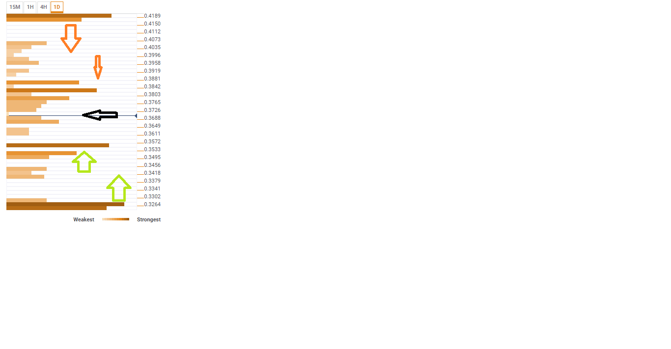 The Confluence Detector tool by FXStreet shows that there a weak resistance at $0.3803 while the key resistance lies at $0.3842. A correction above $0.4 is likely to encounter hurdles at $0.4189. Below the current market value of XRP, a support is highlighted at 0.3649 while a stronger support zone sits at $0.3572. In case of extended declines below the above levels, a major support is seen at $0.3264.