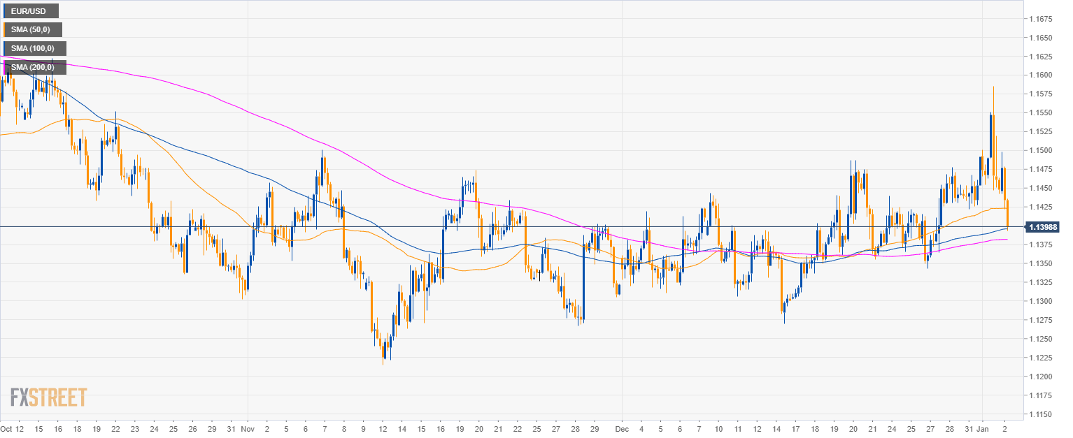 - EUR/USD is sliding down as it rejected the 50, 100 and 200 SMA.