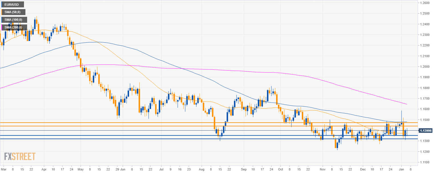 - EUR/USD is currently challenging the 50 SMA and the 1.1400 figure.