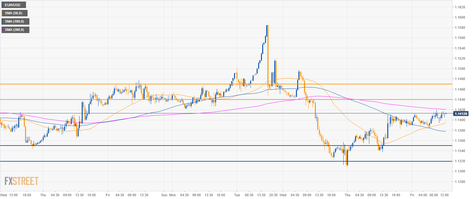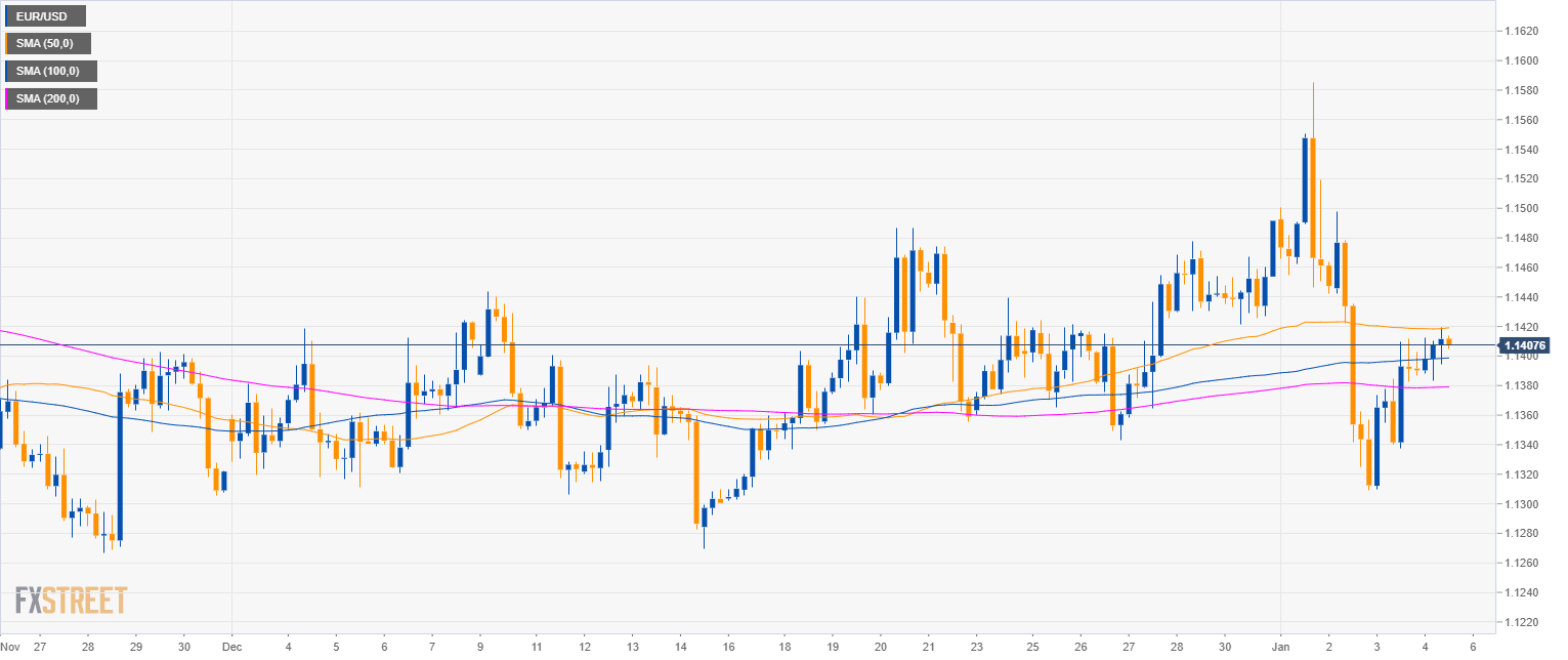 - EUR/USD is currently challenging the 50 SMA and the 1.1400 figure.