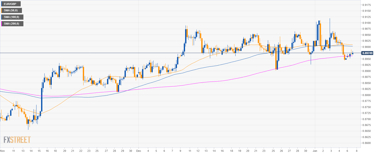 - EUR/GBP is trading below the 100 and 200 SMAs suggesting a bearish bias in the short term.