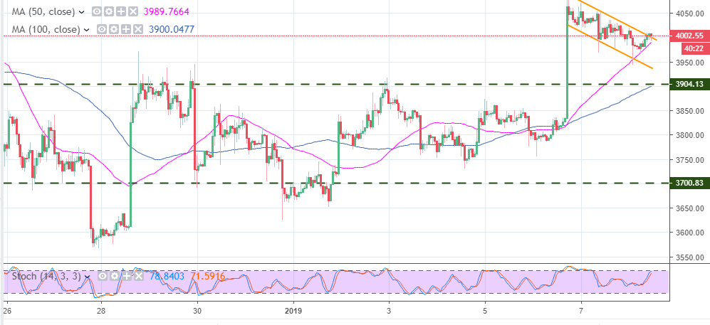 Amid all these negative sentiments in the market, Bitcoin has managed to control the drop limiting declines around $4,000. This is not saying that the asset has not declined considering that the weekend bullish trend could not break above $4,100 resulting in a drop that has been supported above $3,900. In fact, the bullish flag pattern that continues to form is steadily nearing a breakout. Bitcoin is primed for a move towards $4,100 and could eventually test $4,200 in the medium-term.