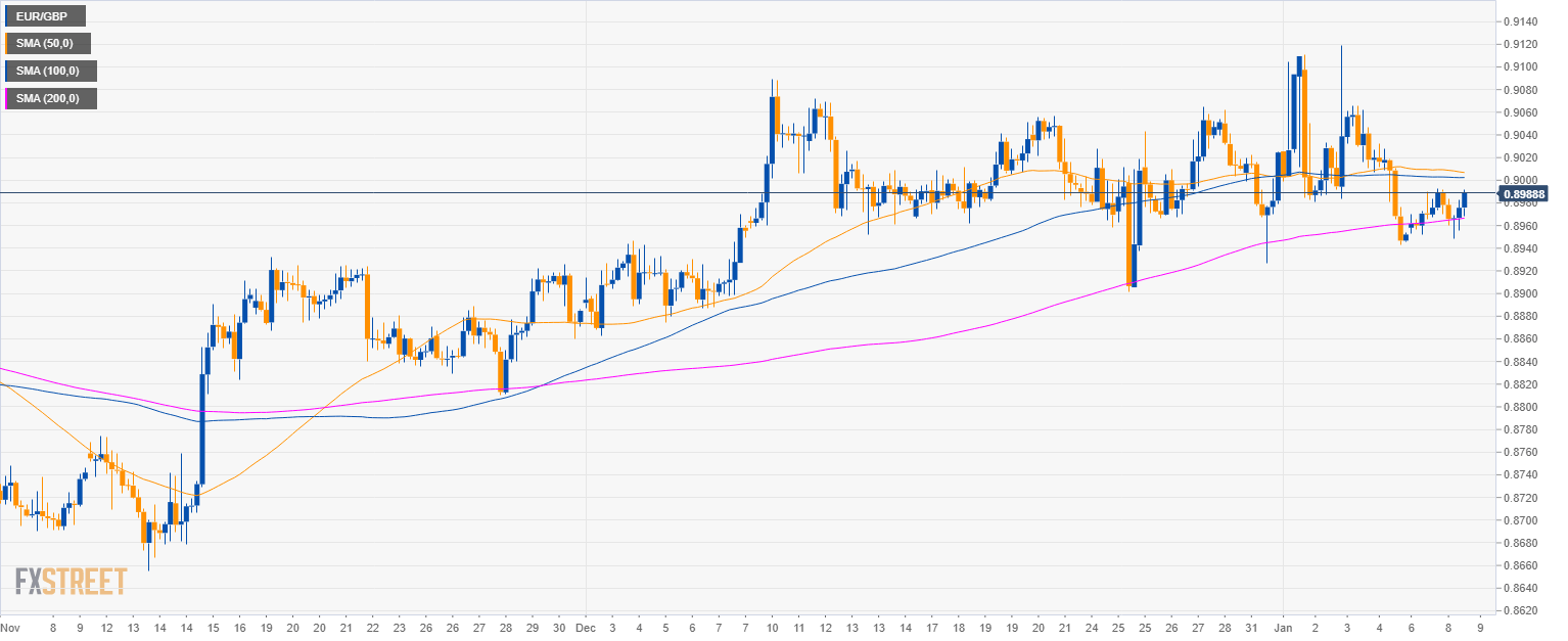 - EUR/GBP is trading between the 100 and 200 SMAs.
