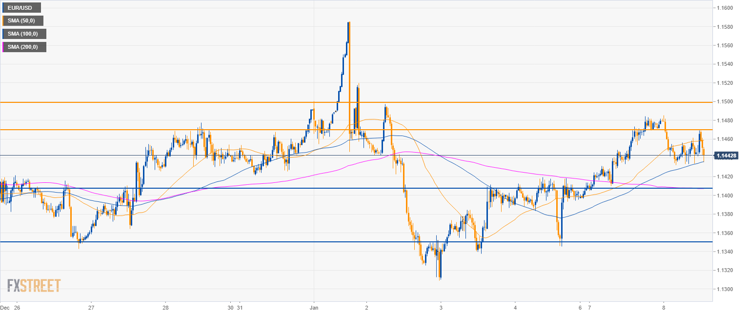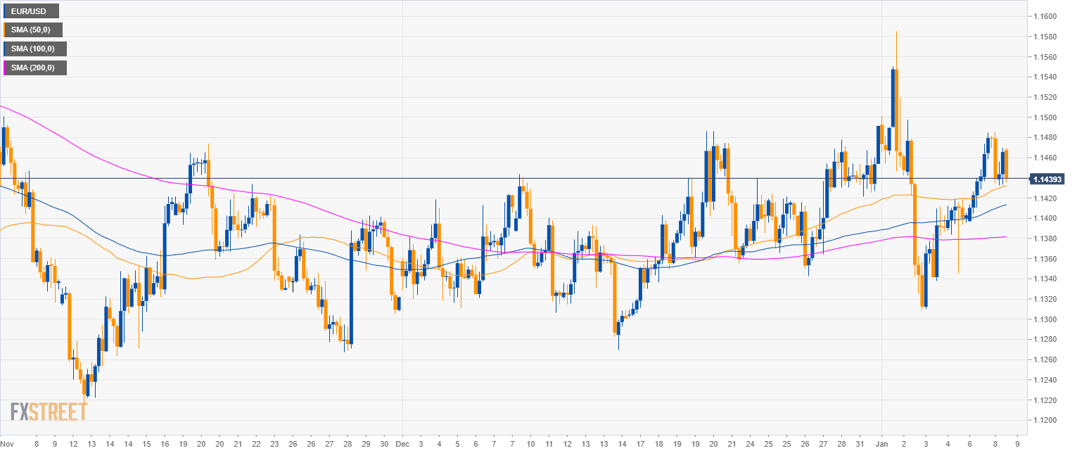 - EUR/USD is trading just above the 50 SMA and below 1.1500 figure.
