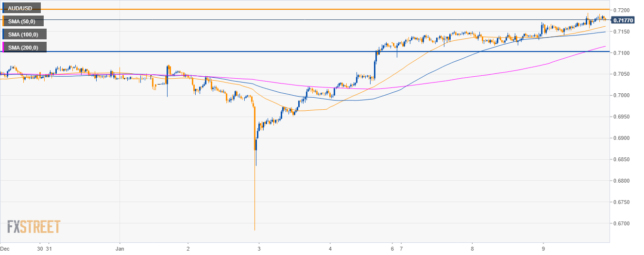 • AUD/USD has  tested the 50 and 100 SMA near the 0.7200 figure.