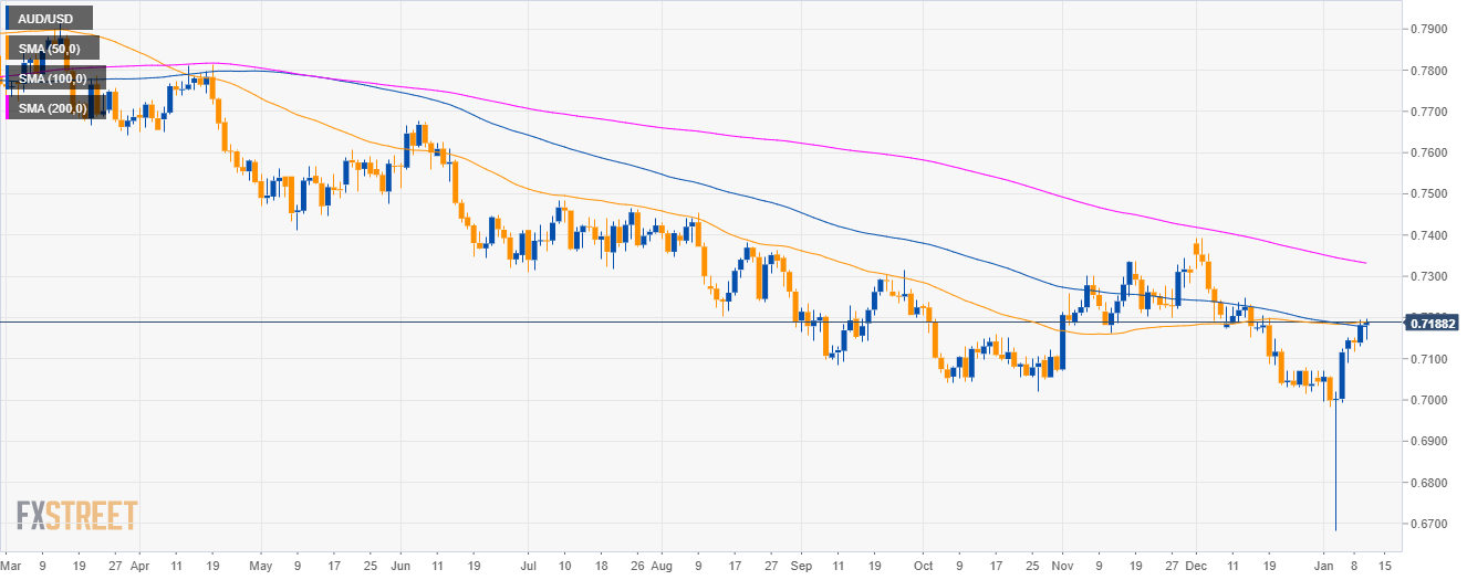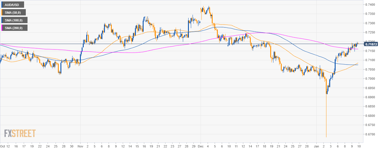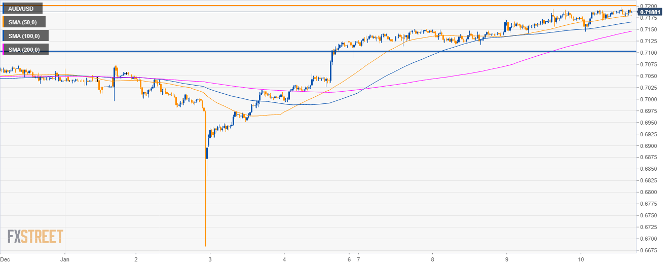 - AUD/USD is challenging the 50 and 100 SMA near the 0.7200 figure