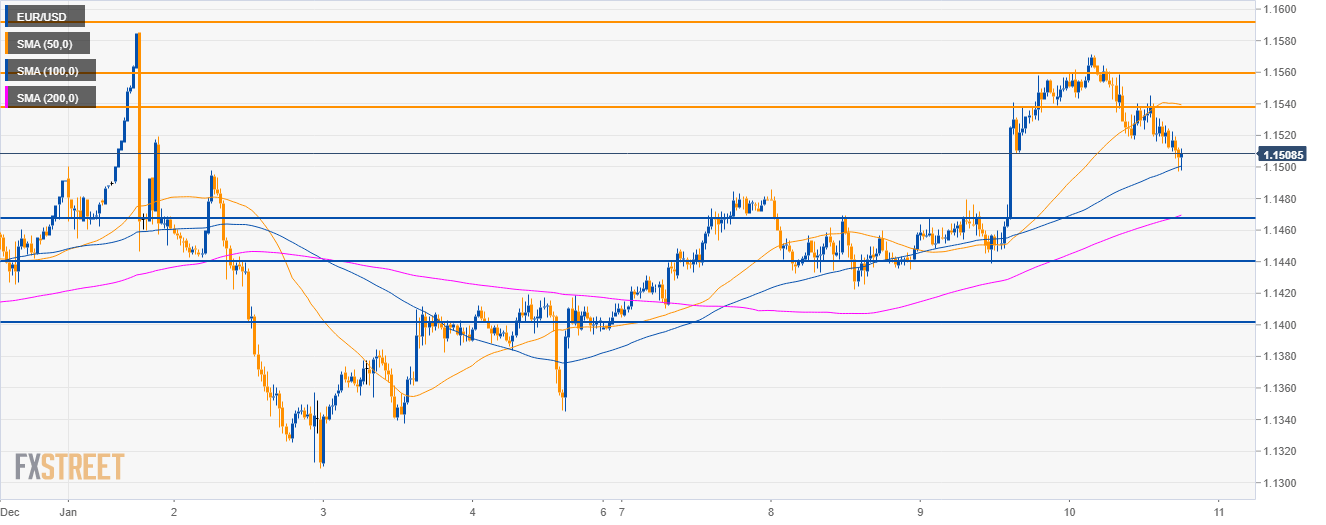 - The 1.1540 and 1.1560 resistances are currently capping bullish advances as traders are testing the 100 SMA.