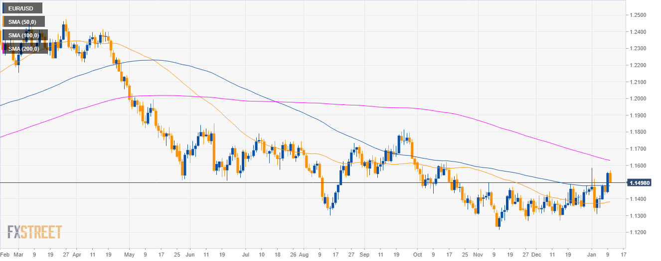 - EUR/USD is trading above its main SMAs as bulls challenged the 2019 high.