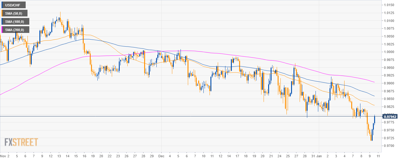 - USD/CHF is trading in a sideways trend below the 50, 100 and 200-period simple moving average (SMA).