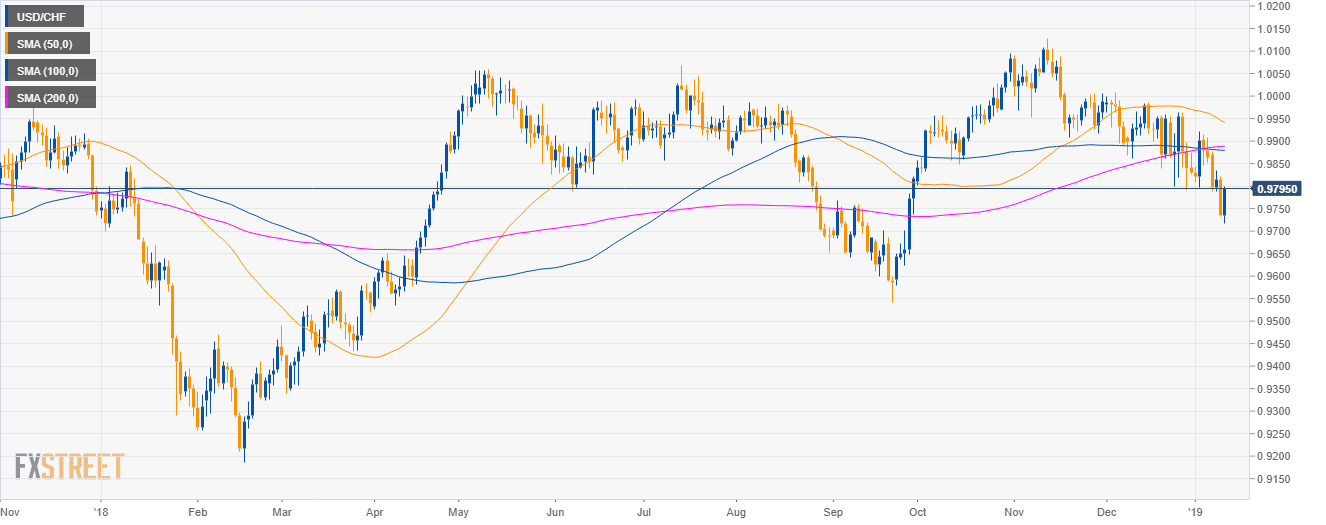 - USD/CHF is having a reversal up as it is trading below its main SMAs.