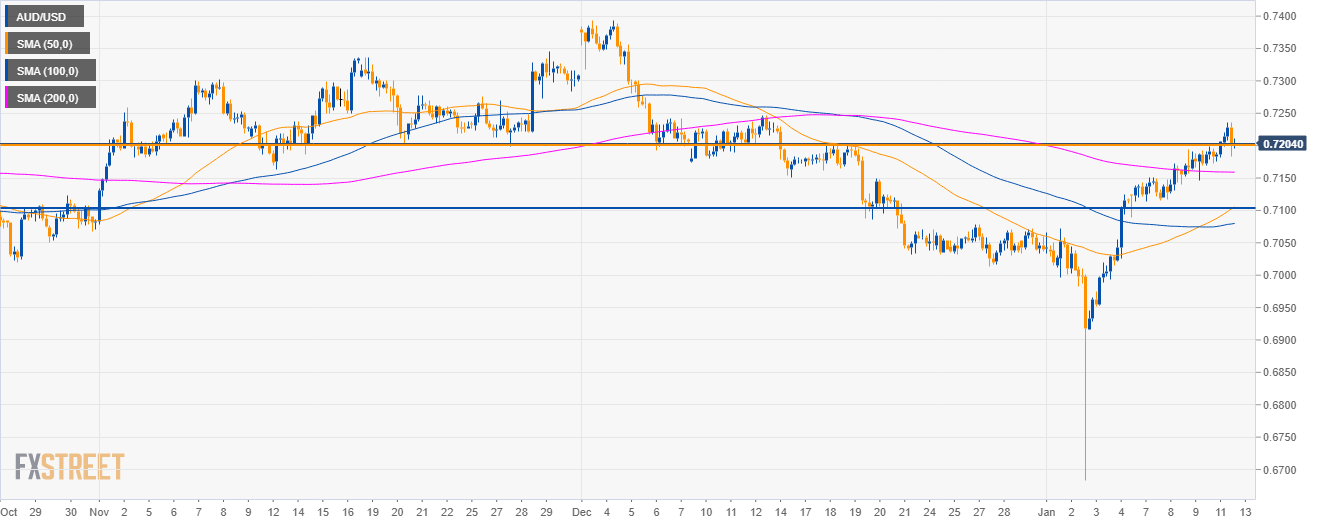 • AUD/USD is trading above its main SMAs but the 0.7200 might be very hard to overcome.