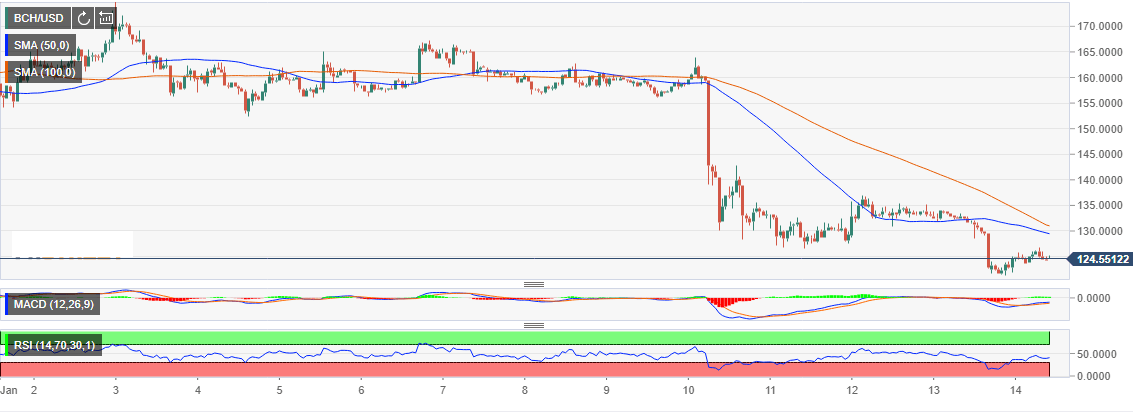 After Bitcoin Cash failed to sustain growth above $170, it retreated in a stable range between the higher limit at $165 and the support at $ 150. The selloff midway through last week sent the asset tail spinning below several other support areas at $140 and $130. BCH/USD traded lows around $121 before a weak bounce occurred sending it slightly above $135.
