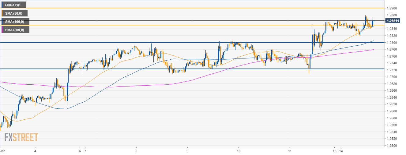GBP/USD Technical Analysis: Cable trading just below the 1.2900 figure as bulls challenge the 100-day simple moving average