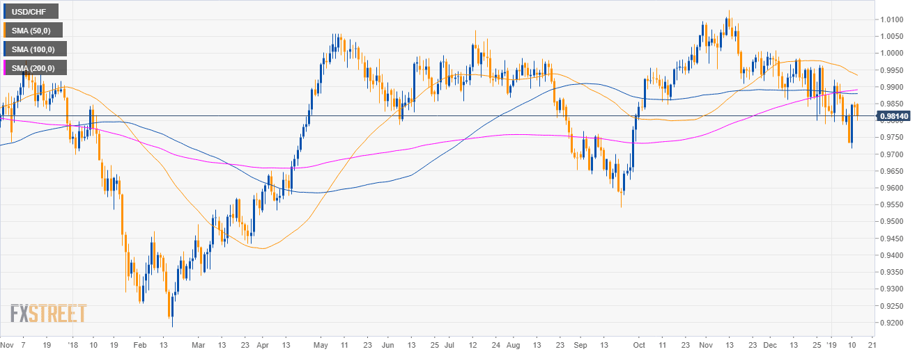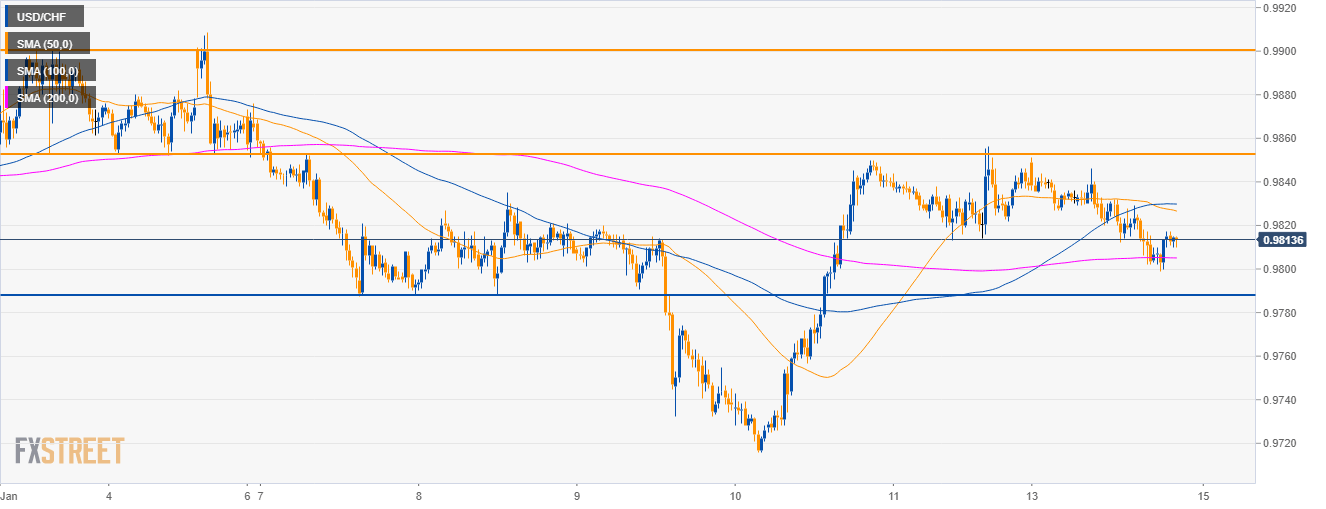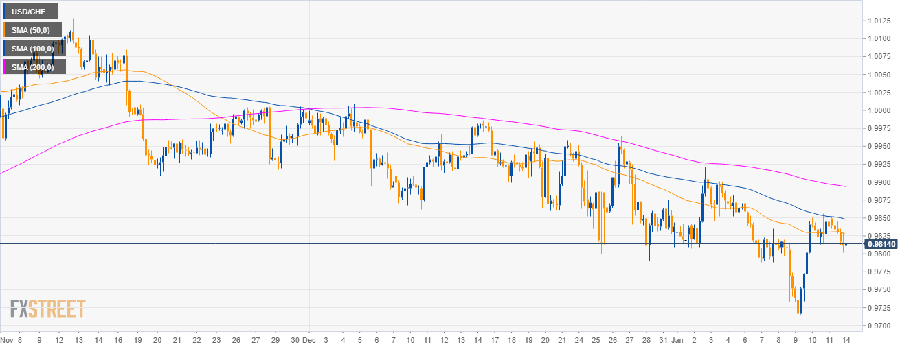 • USD/CHF is trading in a sideways trend below the 50, 100 and 200-period simple moving average (SMA).