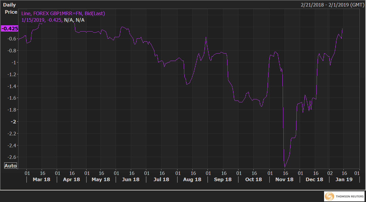 The drop in demand for bearish bets is likely an indication that the scenario of Brexit vote defeat by a big margin is already priced in.