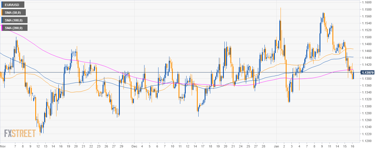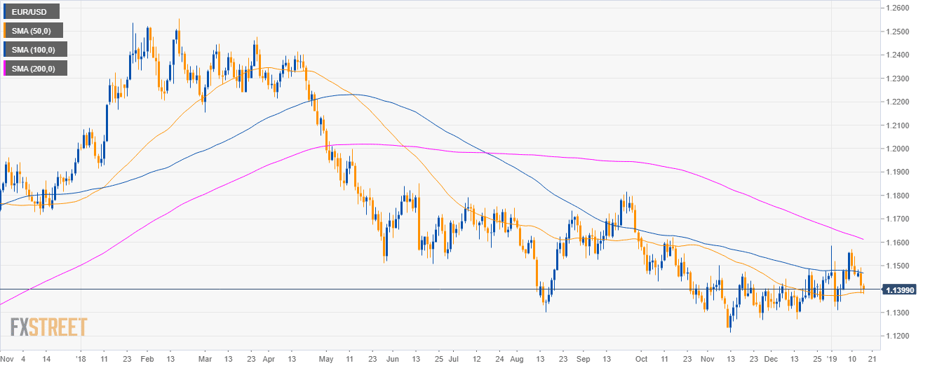 • EUR/USD is trading in a bear trend below its 200-day simple moving averages (SMAs).
