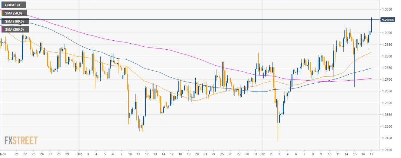 - GBP/USD is trading above its main SMAs as bulls broke above the 1.2900 figure.