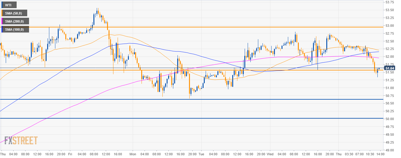 - WTI is testing the 50 SMA as bears are driving the price below $52.00 a barrel.