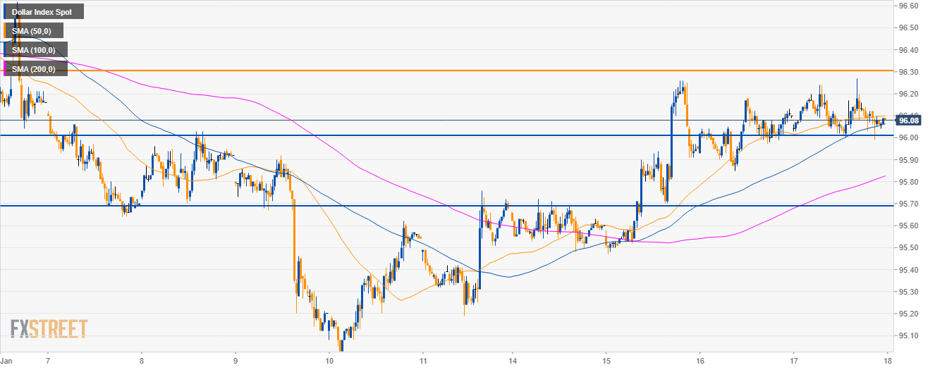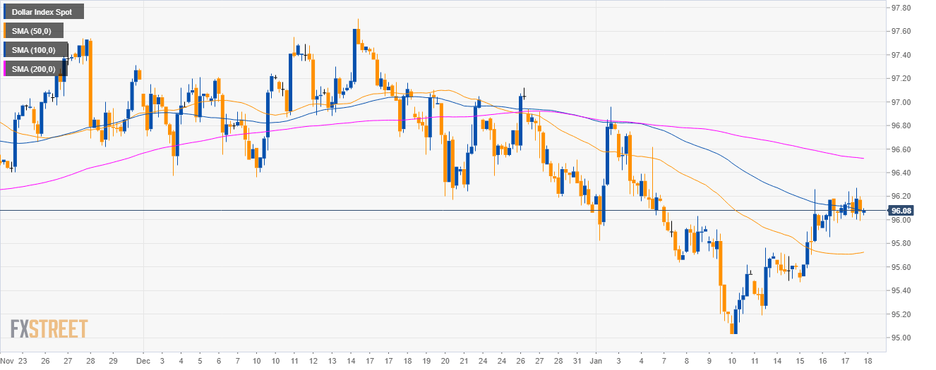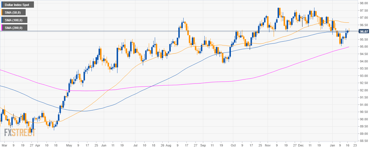 • DXY is trading below the 50 SMA and is set to break below the 96.00 support.