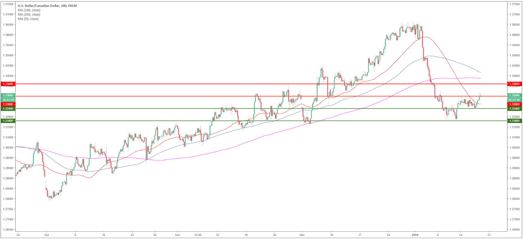 - USD/CAD is trading above the 50 SMA as bulls are trying to retake the 1.3300 figure.
