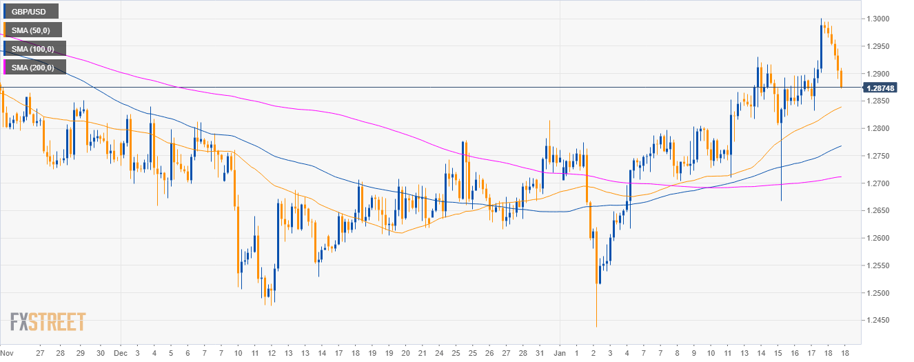 - As bears broke below the 1.2900 figure and the 200 SMA, GBP/USD is set to decline toward the 1.2820 level.