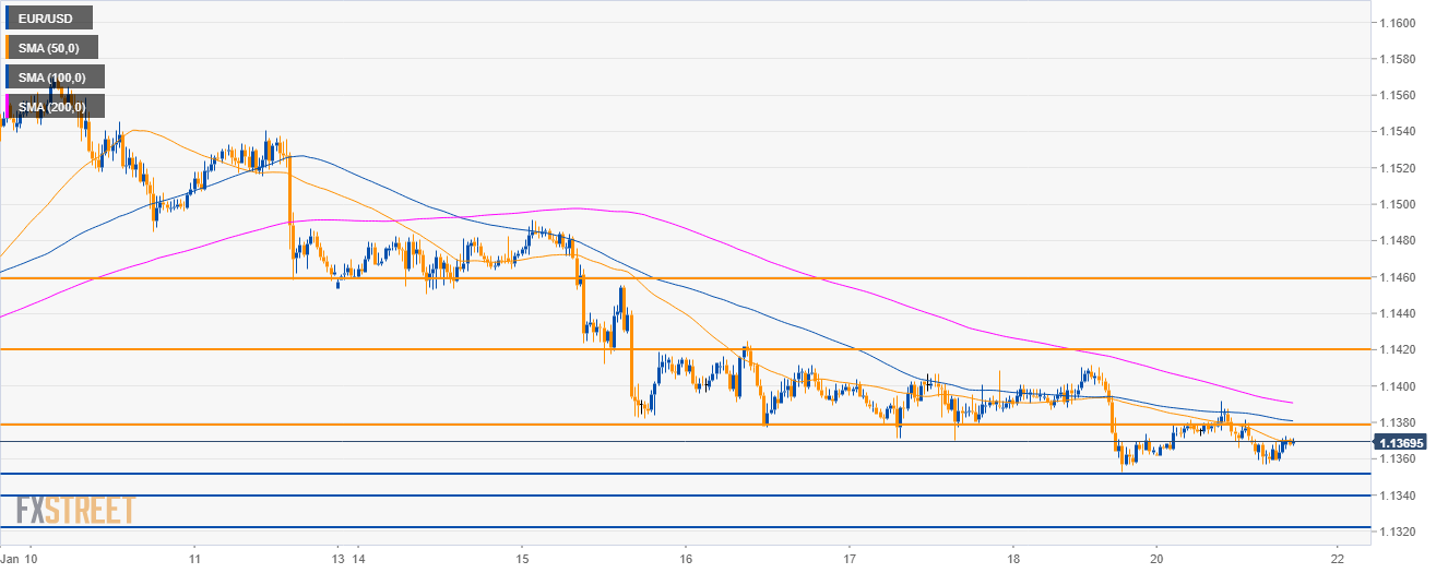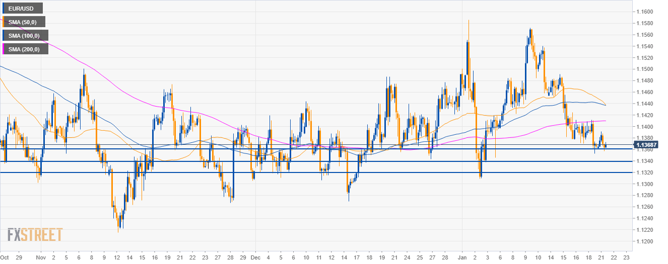 - EUR/USD is trading in a bear trend below its major simple moving averages (SMA) as bears broke below the 1.1400 figure.